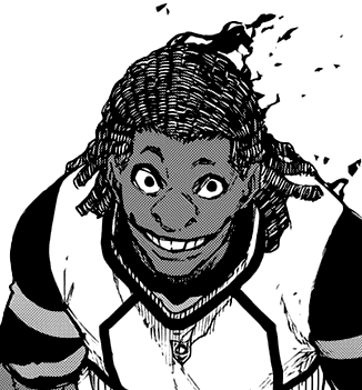 Dada is a very tall man with a large build. He has dark skin, black hair styled as dreadlocks, and brown eyes. Dada possesses a very strong physique and presumably has high jumping power, as he was able to overpower Aryu in the air with ease.