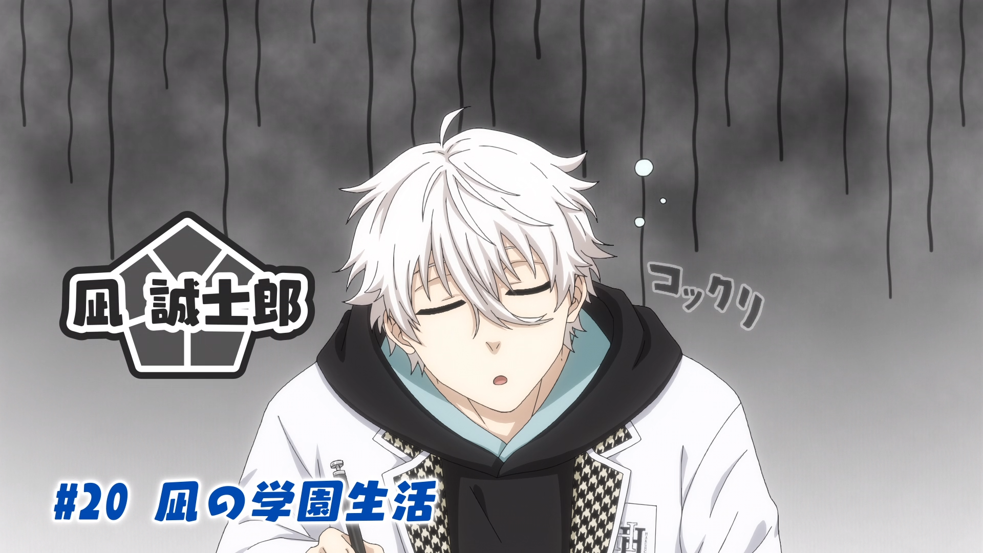 At school, Nagi feels sleepy and sleeps during the first three periods. Mikage wonders if he is dead and throws an eraser at him. Nagi then wakes up in shock and stands up saying "Minovsky particles", but the teacher tells him that they are studying World History, and at this rate he will fail this class. All while, Mikage laughs at Nagi. Later, after the have an exam on World History, Mikage has the top score of 99 points, followed by Nagi with 98 points. Nagi is impressed by Mikage taking the first place, but Mikage is more impressed that Nagi managed to came second.